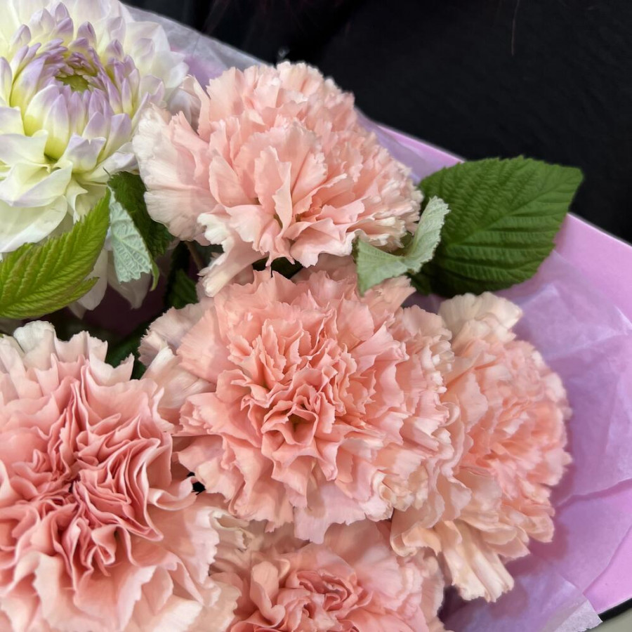 Букет из белых георгин и розовых гвоздик в Павловском Посаде