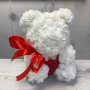 На фото мишка из роз белый. В составе: . Все цветы свежие и ароматные, букет красиво оформлен и отлично подходит для подарка. Доступна доставка цветов или самовывоз.